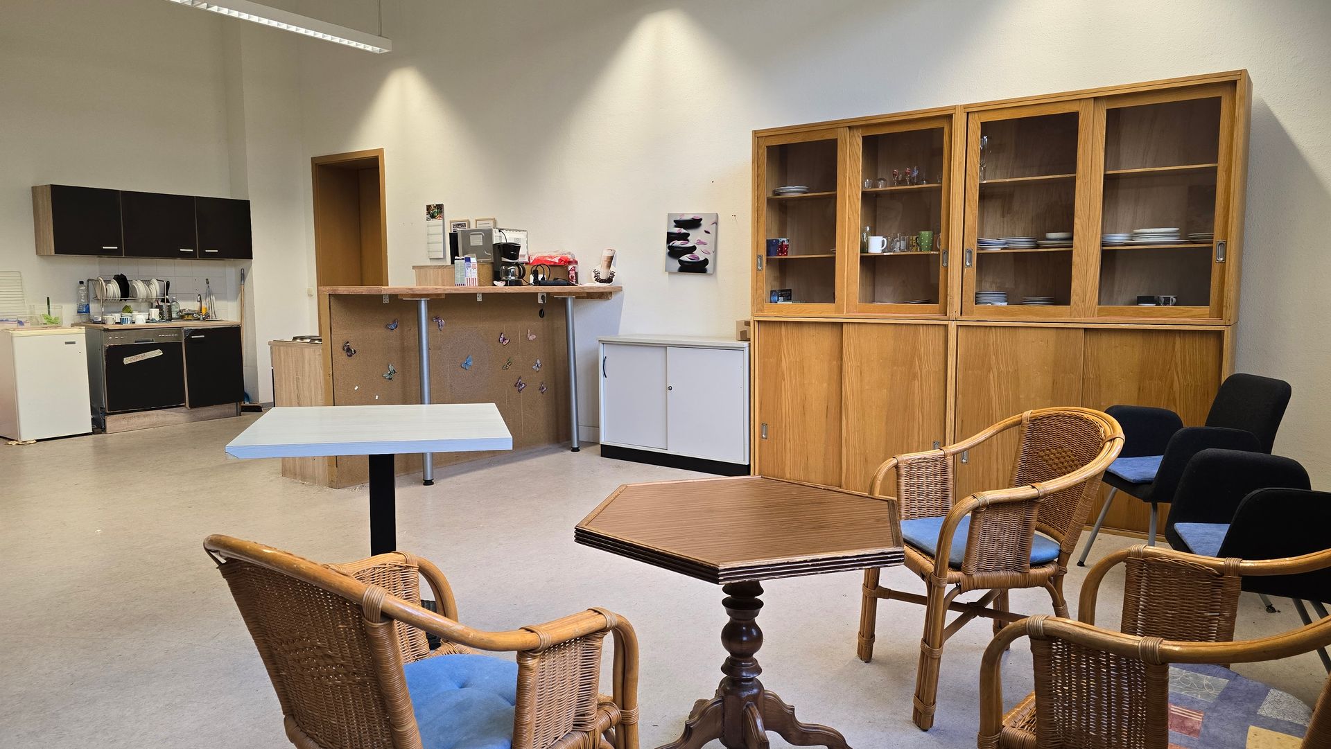 In Auswertung der Umfrage bezüglich der Nutzung der „Begegnungsküche“ und aufgrund eines dringenden Raumbedarfs, den die LAMSA angemeldet hat, wird es folgende Belegungsveränderungen geben: Gemeinsam mit der LAMSA werden wir den Raum 1.01 zum Konferenz- und Beratungsraum umwidmen und herrichten.